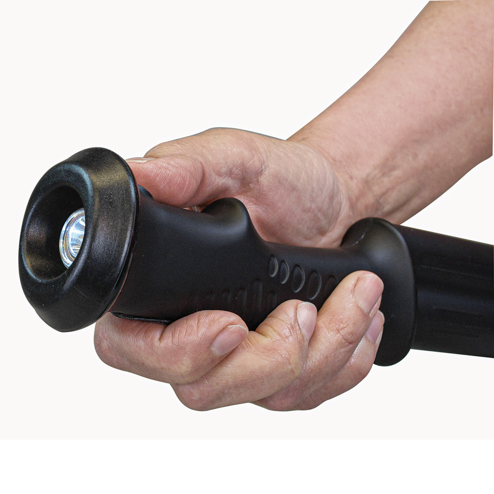 The ZAP™ Hike 'n Strike™ is a multi-talented hiking staff that features a 950,000-volt stun device with spiked electrodes so you'll never forget to bring safety accessories on your adventure. And if you start losing sun, don't fret-- there's also a flashlight built right in. A texturized rubber grip provides solid support while you trek your way through the wilderness. For added security, there's a removable reflective band on the staff. With the Hike 'n Strike, not only will you see and be seen, but you'll also feel good knowing you can hike worry-free with your new, all-inclusive hiking staff. Supports up to 250 lbs. Features: •Expandable hiking staff - a must-have for wilderness lovers everywhere •Great for camping, hiking, or everyday walking •950,000 stun device incorporated into the handle for built-in security or 4.6 milliamps •Features ZAP™ patented EXTREME Spike Electrodes for added safety •Includes 114 Lumens flashlight with removable cap for covering stun device when not in use •Rubber non-slip handle for secure grip •Removable reflective band for greater visibility •Weight: 18 oz. with batteries •Includes: Three (3) lithium CR123A batteries •Includes: Wrist strap •Includes: Extra end cap •Includes: Removable reflective band •ZAP™ exclusive EXTREME Spike Electrodes Patent # USD 680, 188S •2-year warranty •Extends to 56" overall •29" closed length