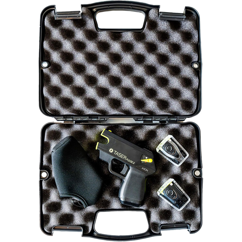 Stay prepared and stay safe with the new and improved TASER Pulse 2. Upgraded with improved durability and a new sleeker, textured design 15-foot range keeps a safe space between you and danger Built-in LASER assisted targeting for enhanced accuracy Immobilizes an attacker for up to 30 seconds with NMI (Neuromuscular Incapacitation) Contact stun for close encounters (stun feature can only be used once the cartridge has been deployed or if there is no cartridge in the device) TASER Safe Escape Product Replacement Guarantee Protection Within Reach that’s Built to Last The ultimate sidekick, the TASER Pulse 2 housing is made from a high-impact polymer (known for its incredible durability) ensuring the internal mechanics of the TASER Pulse 2 remain functional while also having a comfortable, textured grip. Weighing just 8 ounces, the TASER Pulse 2 is light enough to carry anywhere and allows you to carry fewer worries along the way, too. CONTENTS TASER Pulse 2 Device 2 Self-Defense Cartridges Lithium Battery Conductive Practice Target Soft Carry Sleeve